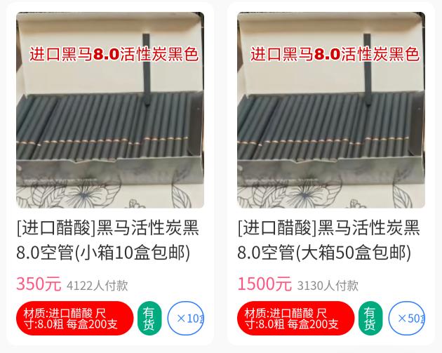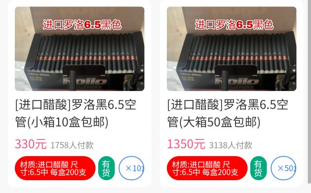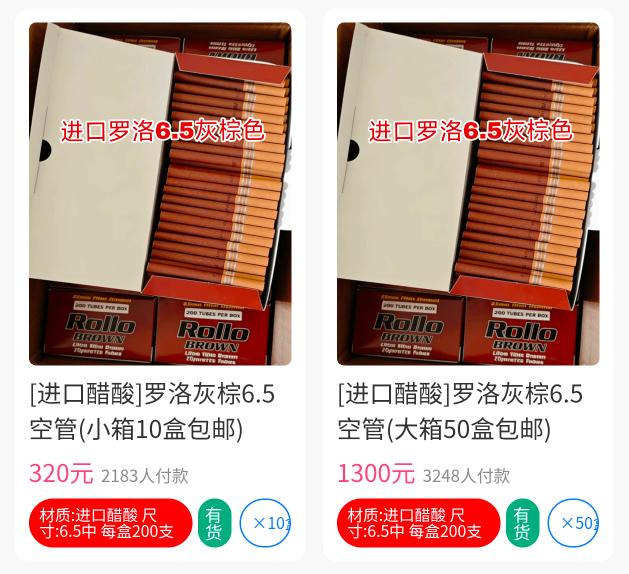 只按箱来发,小箱起十盒,大箱五十盒,每盒200支